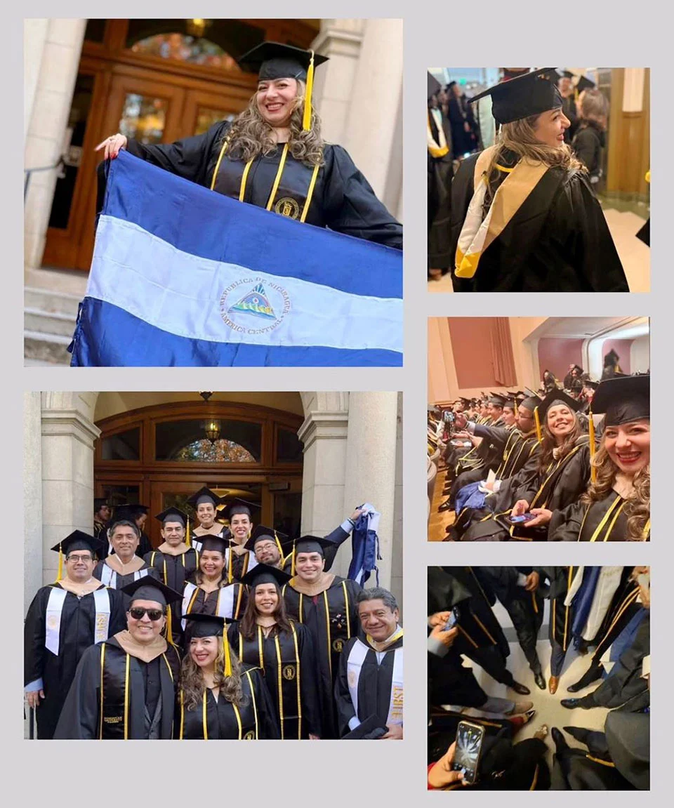 Todos los graduados combinaron sus estudios con jornadas laborales y la responsabilidad de sostener económicamente a sus familias, en un contexto de exilio forzado y reconstrucción de sus vidas fuera de Nicaragua.